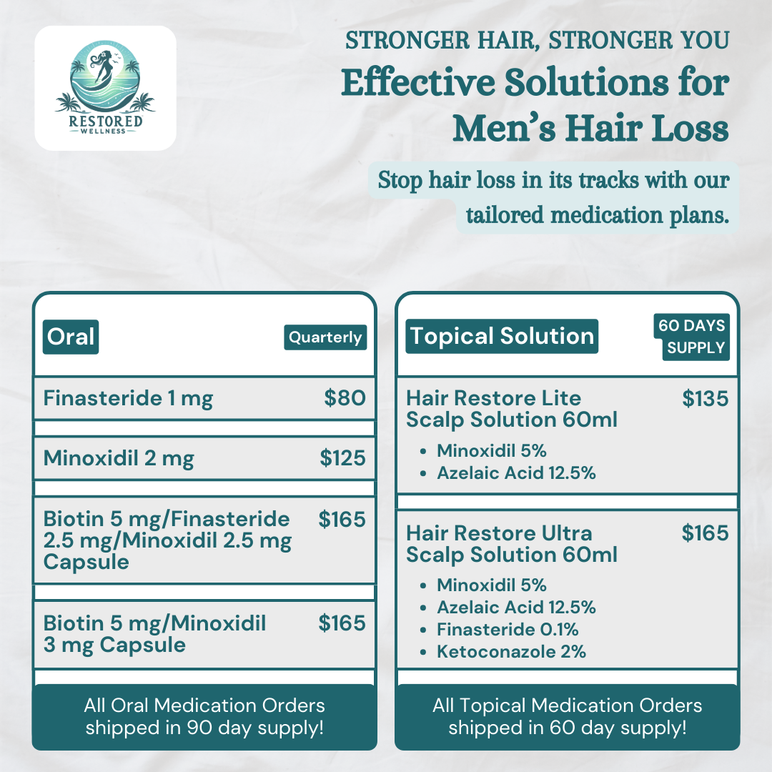 Medications based on State Availability and Medical Necessity. We use 503A and PCAB (Pharmacy Compounding Accreditation Board) accredited Compounding Pharmacies. †Ozempic®, and WeGovy® are registered trademarks of Novo Nordisk. Zepbound® and Mounjaro® are registered trademarks of Eli Lilly. Restored Wellness is not affiliated with Novo Nordisk or Eli Lilly, and the compounded products offered by Restored Wellness are not produced by these companies. *Compounded medications are not FDA-approved or evaluated for safety, efficacy, or quality by the FDA, but can be prescribed by licensed healthcare providers based on individual patient needs.