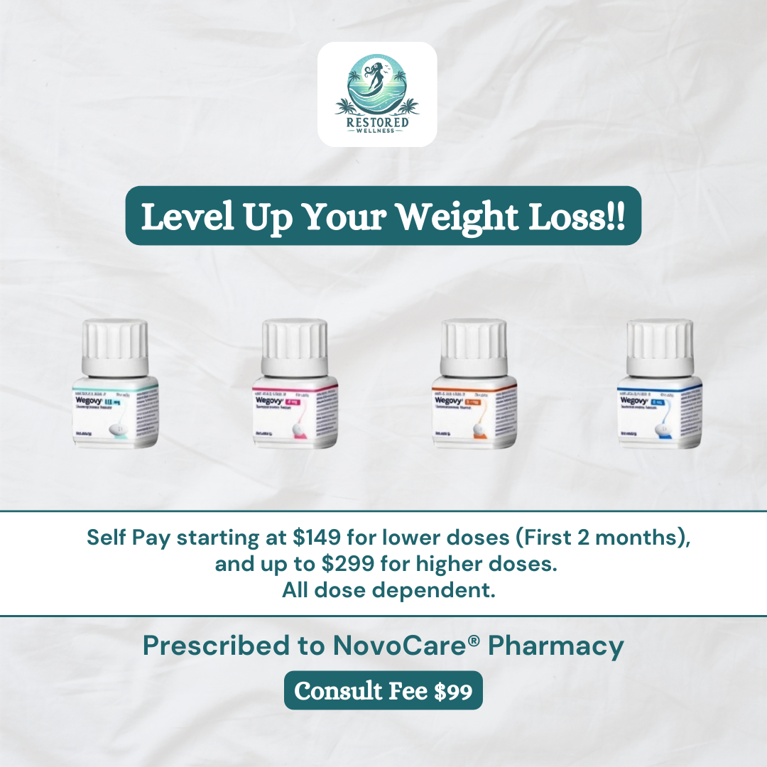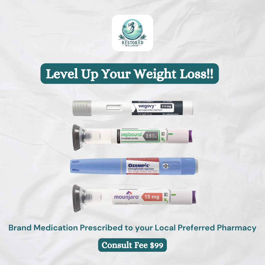 *Ozempic® and Wegovy® are registered trademarks of Novo Nordisk. Zepbound® and Mounjaro® are registered trademarks of Eli Lilly. Restored Wellness is not affiliated with Eli Lilly or Novo Nordisk.
